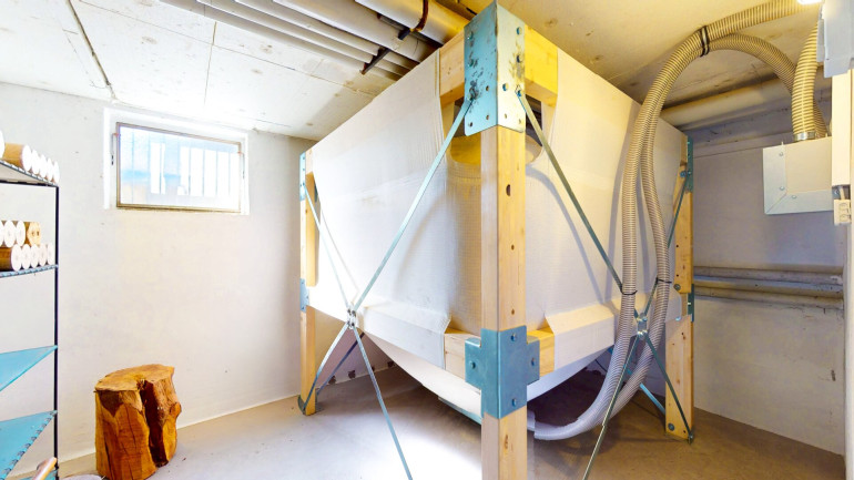 Ein wesentlicher Mehrwert liegt im Keller- bzw. Untergeschoss, das weit über klassische Nebenflächen hinausgeht. Dort zeigen die Pläne und Fotos mehrere Lagerräume, einen Heizungsraum, einen Pelletraum, einen Flur sowie einen zusätzlichen Büro- bzw. Nutzraum. Gerade für Käufer, die gezielt nach einem Haus mit viel Stauraum, Haus mit Lagerflächen, Haus mit Keller, Haus mit Werkstattpotenzial, Haus mit Hobbyräumen oder Haus mit separatem Arbeitsbereich suchen, ist das ein starkes Verkaufsargument. Die vorhandene Pellet-Zentralheizung ist in diesem Bereich untergebracht und unterstreicht gemeinsam mit dem separaten Pelletraum die funktionale und nachhaltige Ausrichtung der Haustechnik.