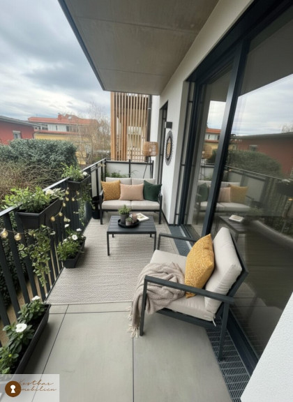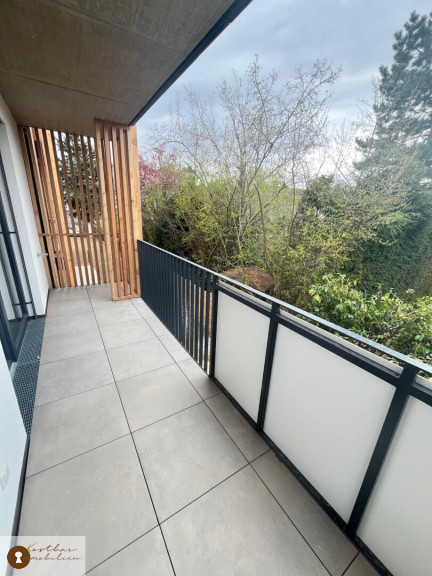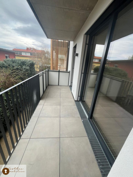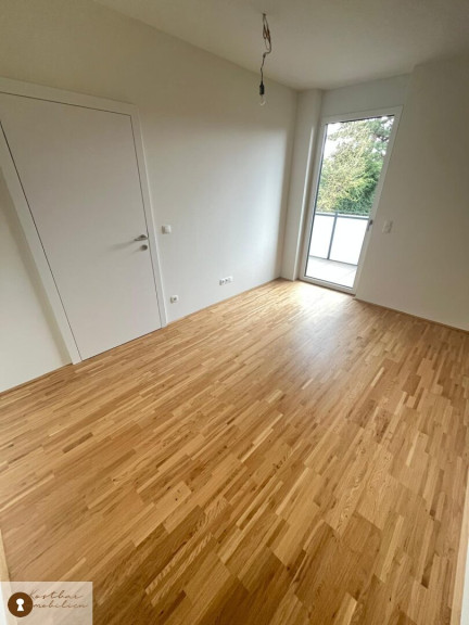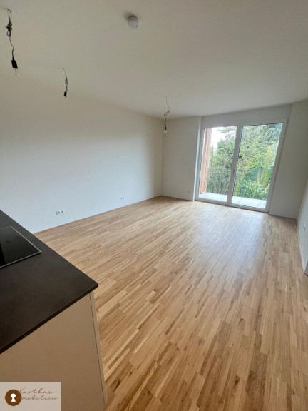 Der offene Küchen-, Ess- und Wohnbereich sorgt für eine großzügige und einladende Atmosphäre in der Wohnung. Die hochwertige moderne Küche ist vollständig ausgestattet und bietet optimale Voraussetzungen für kulinarische Genüsse. Das lichtdurchflutete Wohnzimmer, das zum Balkon führt, lädt zum Entspannen und Verweilen ein - Grünblick inklusive.