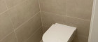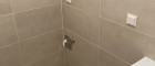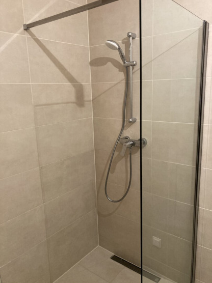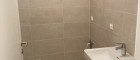 Modernes Badezimmer mit Dusche und Waschmaschinenanschluss