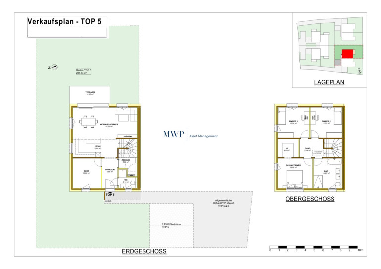 Das hier angebotene Haus 5 ist eine Doppelhaushälfte und misst ca. 120,76m2 Wohnfläche | ca. 188,37m2 Garten | ca. 9,20m2 Terrasse | 5x Zimmer | mtl. Baurechtszins ca. 212 €