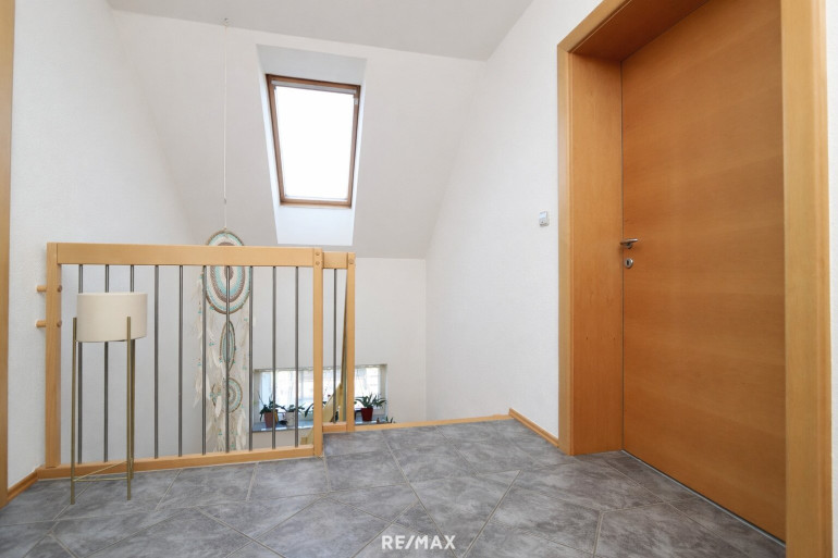 Im oberen Bereich erwarten Sie drei gut geschnittene Zimmer, die sich flexibel als Schlaf-, Kinder- oder Arbeitsräume nutzen lassen. Eine offene Galerie schafft zusätzliche Großzügigkeit und ein angenehmes Raumgefühl. Komplettiert wird das Stockwerk durch ein Badezimmer mit WC. Alle Zimmer im Obergeschoß sind mit einem französischem Balkon ausgestattet.