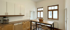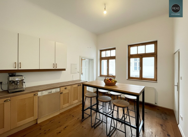 - 1 Zimmer mit Einbauküche, Kaminofen sowie Platz für einen Essbereich