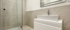 - Badezimmer mit bodenebener Dusche und WC