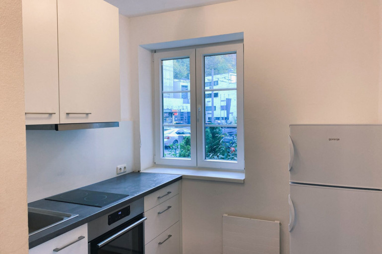 Die Wohnung liegt im Erdgeschoss in einem Gebäude mit insgesamt 6 Wohneinheiten und verfügt über einen Vorraum mit Küche, ein Bad mit Dusche und WC, sowie ein Zimmer (Wohn- bzw. Schlafzimmer). Das Gebäude wird zentral mit Gas versorgt, jede Wohnung verfügt über einen Warmwasserboiler (mit Nachtstrom geheizt) und eine Einbauküche nach aktuellem Standard.