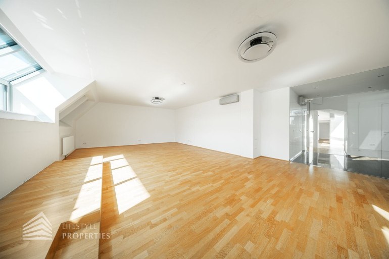 Die einzigartige Dachgeschosswohnung befindet sich in einem, im Jahr 1891 erbauten, wunderschönen Altbau und teilt sich in 2 Ebenen. Die Wohnräume sind mit schönem Parkett ausgestattet, die Bäder sind mit Fliesen ausgestattet, außerdem verfügt die Wohnung über eine Kühlung für heiße Sommertage. Mit einer Wohnfläche von ca. 252 m², 2 Terrasse mit einer Gesamtfläche von ca. 26 m² und viel natürlichem Tageslicht, überzeugt diese Wohnung in allen Punkten.