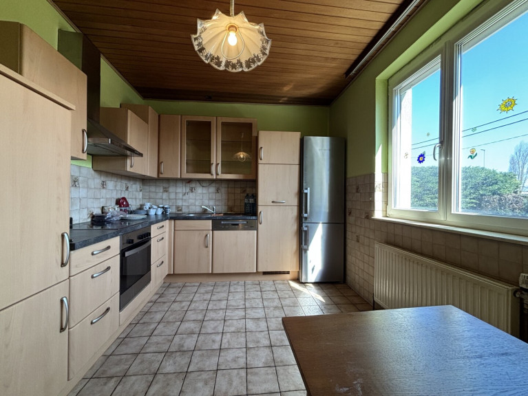 Fliesen, Parkett, Gas, Zentralheizung, Einbauküche, Bad mit Fenster, Badewanne, Dusche, Garage, Parkplatz