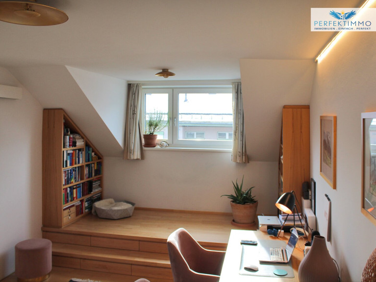 Im Herzen von Innsbruck gelangt ein ganz besonderes Juwel in den Verkauf: Die große 4-Zimmer-Dachgeschoßwohnung besticht durch einen sagenhaften Bergblick in alle Richtungen - Serles, Patscherkofel, Sellraintal, Solstein, Bettelwurf, Hohe Warte, Nordkette und Rumer Spitze bieten eine eindrucksvolle Kulisse. Die Wohnung ist das ganze Jahr über sehr sonnig, auch im Winter. Durch die Lage unter dem Dach ergeben sich in den Zimmern einige schöne Dachschrägen und durch den Einbau von Podesten wurden besonders gemütliche Nischen gebildet, in denen man sich sofort zuhause fühlt.