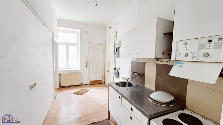 Zum Verkauf gelangt eine sanierungsbedürftige 2-Zimmer-Eigentumswohnung im Hochparterre eines Wohnhauses im 16. Bezirk von Wien.