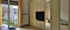 Die Wohnfläche verteilt sich auf zwei Ebenen und umfasst insgesamt drei Zimmer. Der Wohnbereich ist offen gestaltet und bietet direkten Zugang zur Südwest-Terrasse. Diese ermöglicht eine gute Besonnung und bietet einen freien Ausblick.