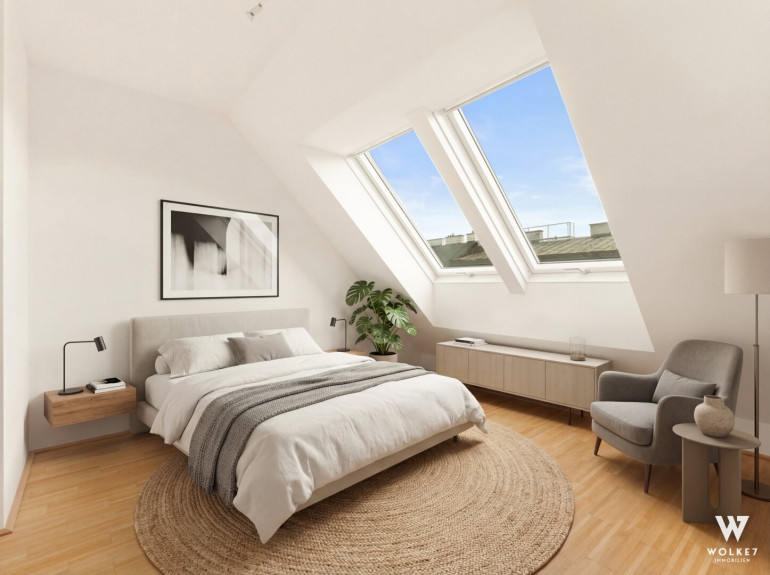 Traumhafte Dachgeschoß-Maisonette-Wohnung: 1 Gehminute zum Aumannplatz | Klimaanlage