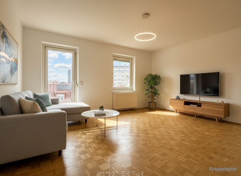 Hinweis: Alle Angaben ohne Gewähr. Irrtümer und Tippfehler vorbehalten. Die dargestellten Fotos wurden mit künstlicher Intelligenz erstellt und möbliert und dienen der besseren Vorstellungskraft. Die Wohnung wird ohne Möbel übergeben.