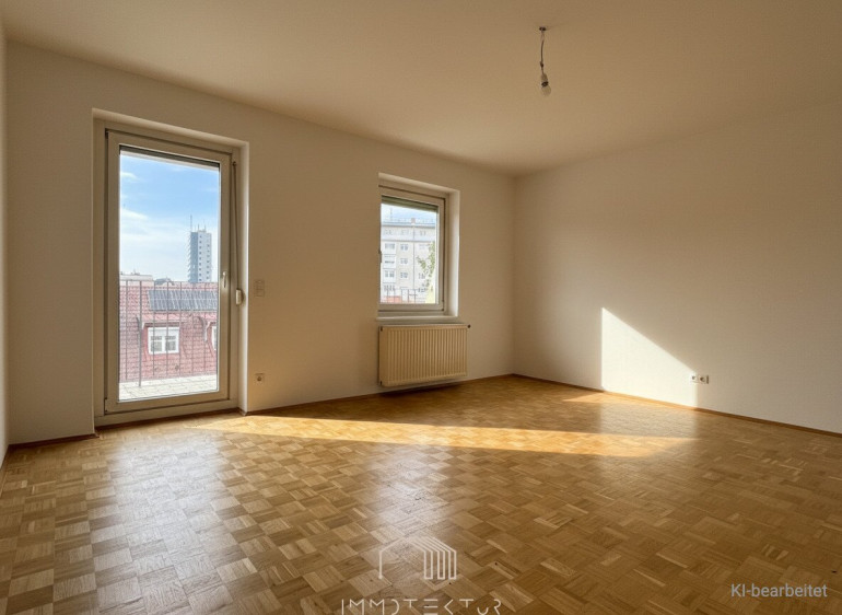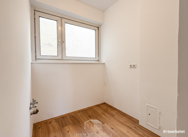 Der Wohnbereich wirkt dank großzügiger Fensterflächen besonders lichtdurchflutet und einladend. Die nagelneue Küche inklusive Waschmaschine wird in Kürze eingebaut und fügt sich harmonisch in das moderne Gesamtbild ein. Bad und WC sind getrennt angelegt und verfügen über Fenster – ein praktisches Detail, das den Alltag spürbar komfortabler macht. Da die Wohnung unmöbliert übergeben wird, haben Sie alle Freiheiten, Ihre eigenen Wohnideen zu verwirklichen und den Raum ganz nach Ihrem Stil zu gestalten.