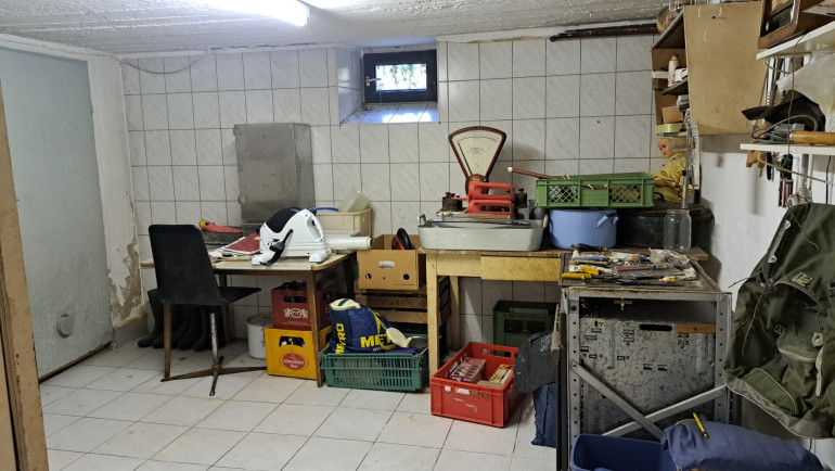 Der großzügige Keller, ehemals für eine Champignonzucht genutzt, bietet außergewöhnlich viel Platz und eignet sich hervorragend als Lagerfläche – beispielsweise für Wein, Vorräte oder als Hobbyraum.