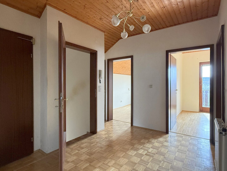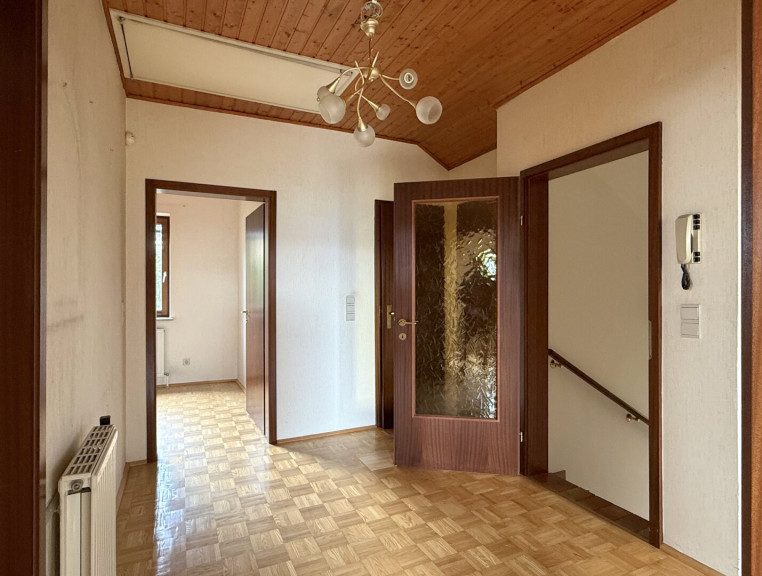 Mit rund 145 m² Wohnfläche auf zwei Ebenen und einem voll unterkellerten Geschoss bringt es alles mit, was es dafür braucht. Gleichzeitig spürt man beim Durchgehen, dass die Jahre nicht spurlos vorübergegangen sind. Materialien, Oberflächen und Details tragen diese Zeit in sich – nicht als Mangel, sondern eher wie eine stille Erinnerung daran, wie lange dieses Haus bereits begleitet hat.