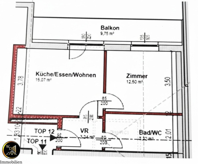 Raumaufteilung / Flächen: Wohnfläche 39,13 m² + Balkon 9,75 m²