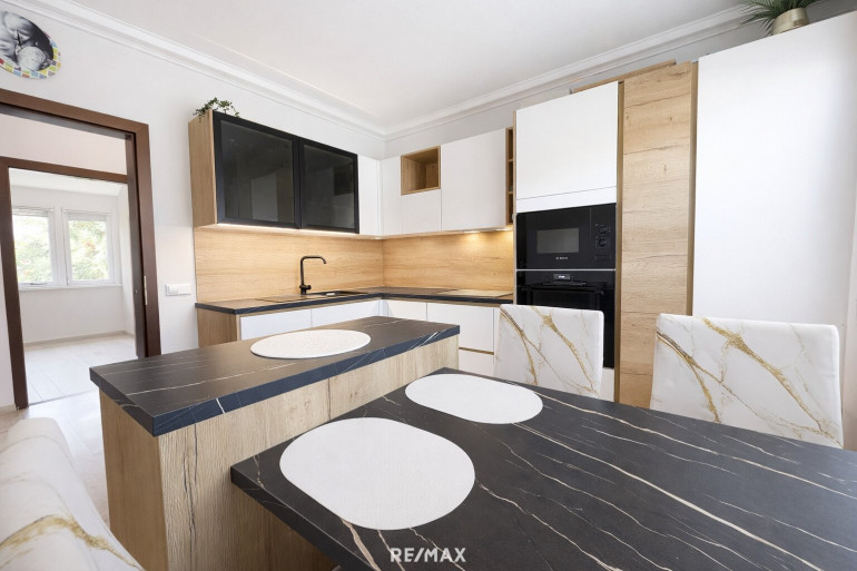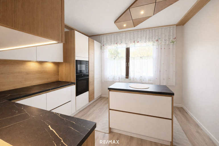 - Moderne Einbauküche (neu 2024) mit integriertem Essbereich für vier Personen