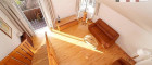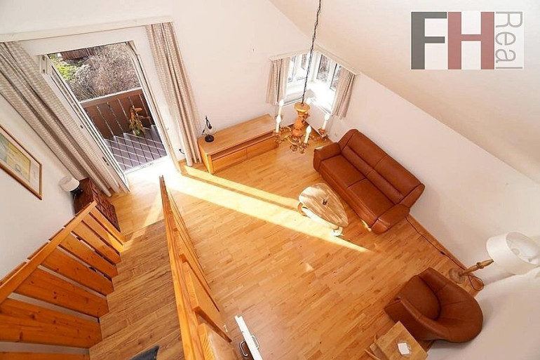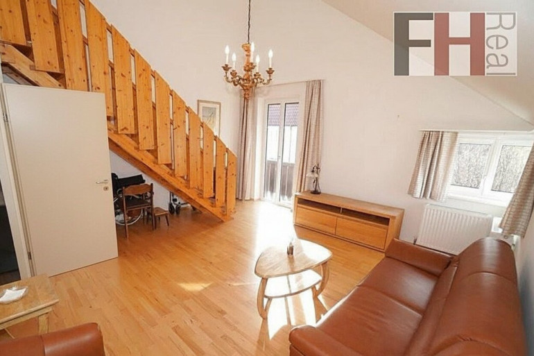 Vom etwa 11 m² großen Vorraum gelangt man zentral zu allen Räumlichkeiten. Neben Abstellraum, WC und Badezimmer mit Dusche erreicht man die vernünftig dimensionierte und mit Fliesen ausgestattete Küche und die beiden Zimmer. Davon misst eines fast 13 m² und bietet sich als Schlafzimmer an. Dieser Raum ist nach Süden ausgerichtet und verfügt über einen direkten Zugang zum geräumigen Balkon, der auch vom benachbarten zweiten Zimmer, dem ebenfalls südlich gelegenen Wohnzimmer, aus begehbar ist. Mit über 22 m² ist dies der Hauptraum und das Herzstück dieser charmanten Wohnung. Von hier führt eine hochwertige Holztreppe zur Galerie hinauf, von welcher man einerseits wunderbar den Wohnbereich überblicken kann, andererseits weiter zu einem kleinen, charmanten Dachgeschoßraum, der für einen zusätzlichen Rückzugsort sorgt, gelangt. Dieser kleine Vorraum ermöglicht auch den Zugang zu einer großen Dachterrasse von 30 m² mit wunderbarem Rundumblick ins Grüne. Nach einem aktiven Tag lässt es sich hier ausgezeichnet entspannen und den Sonnenuntergang genießen!