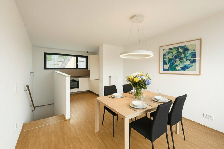 Die Wohnung erstreckt sich über zwei Ebenen und beeindruckt mit lichtdurchfluteten Räumen, großen Fensterflächen und einem ruhigen Balkon zum Innenhof. Perfekt, um den Morgen mit einer Tasse Kaffee zu beginnen oder den Abend entspannt ausklingen zu lassen.