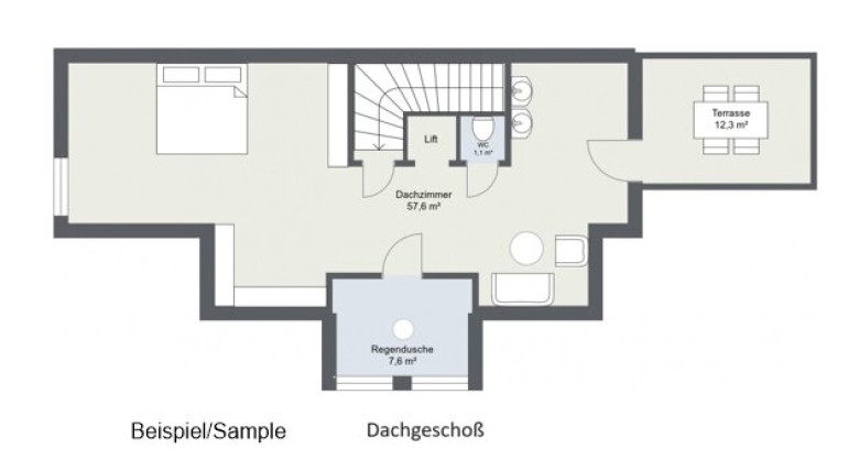 Dem Wohn und Ess- Bereich, wird dank hoher Raumhöhe (3m), ein angenehmes Ambiente verliehen und lässt dank großzügiger Raumplanung, jede erdenkliche Küchenausführung (z.B freistehende Kücheninsel) zu.