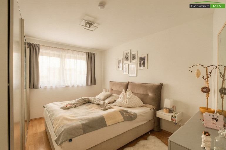 - Zwei schön geschnittene Schlafzimmer mit jeweils ca. 12,42 m² bieten ausreichend Platz für Doppelbett, Schrank und zusätzliche Möbel. Eines der Zimmer ist zusätzlich klimatisiert und sorgt damit auch in den Sommermonaten für angenehme Temperaturen.