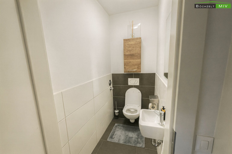 - Ein separates WC (ca. 1,75 m²) mit Handwaschbecken erhöht den Wohnkomfort.