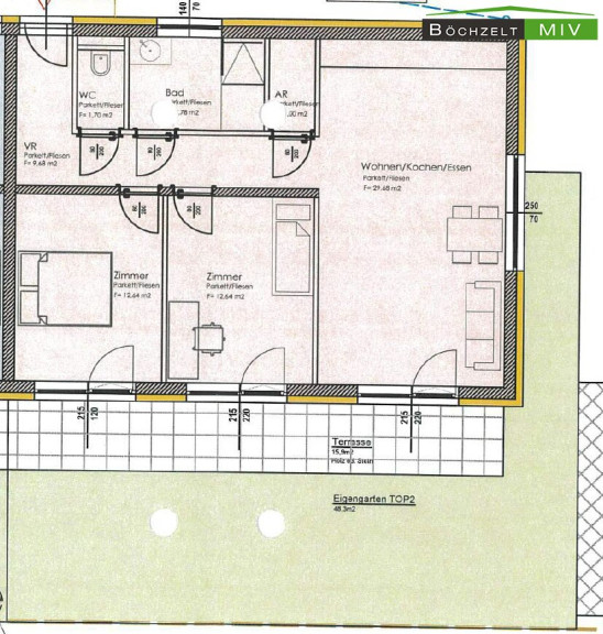 Zur Wohnung gehört eine Terrasse mit ca. 15,92 m² (Betonbelag) sowie ein Eigengarten mit rund 43 m² laut Plan. Diese Kombination aus Terrasse und Garten macht das Objekt besonders für Eigennutzer attraktiv, die Wert auf Freiflächen und Wohnen im Grünen legen - ideal zum Entspannen, Grillen oder als Spielfläche für Kinder.