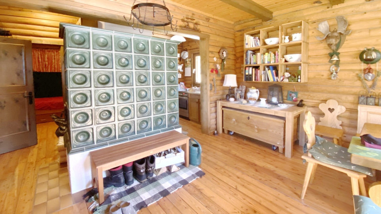 Ein Kachelofen und elektrische Heizpanele sorgen für wohlige Wärme.