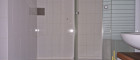 Das Badezimmer ist mit einer Dusche und einem Waschbecken bestückt, die Möglichkeit eine Waschmaschine und einen Trockner zu platzieren ist gegeben. Dasseparate WC ist ebenso mit einem Handwaschbecken ausgestattet.