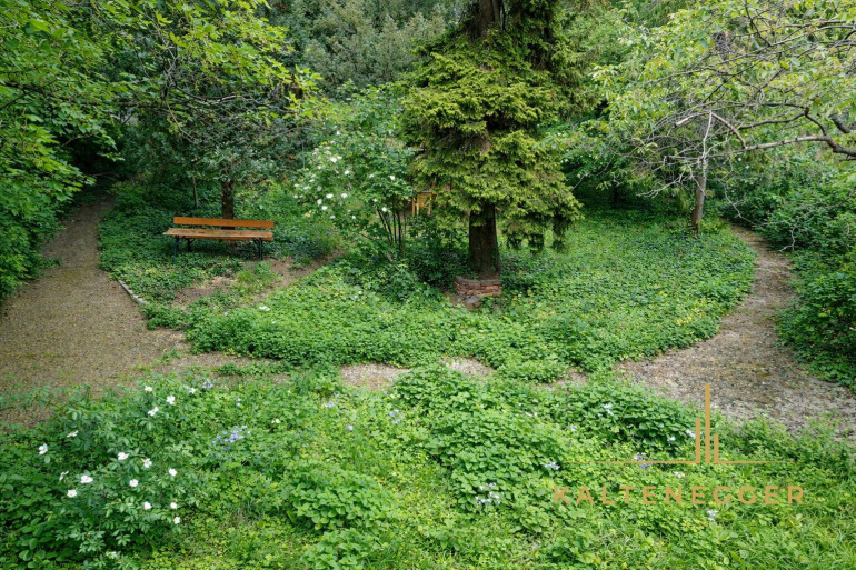 Auch der Garten trägt bis heute die Handschrift des historischen Cottage-Stils. Einzelne ursprüngliche Elemente, darunter ein alter Baumbestand mit teils jahrzehntealten Exemplaren, verleihen der Liegenschaft eine außergewöhnlich gewachsene Atmosphäre.