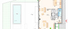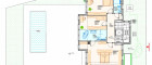 Erdgeschoss: Vorraum, Wohnküche mit Zugang zum Garten (375,25 m²) und Pool