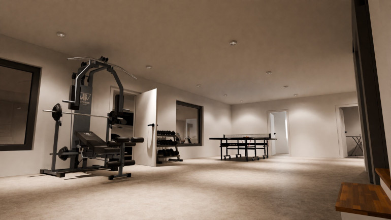 Kellergeschoss: Garage, Keller (Fitness/ Aufenthaltsraum), Wellnessraum, WC, Technikraum, Waschraum und Lichtschacht (Aussenbereich 8,57 m²)