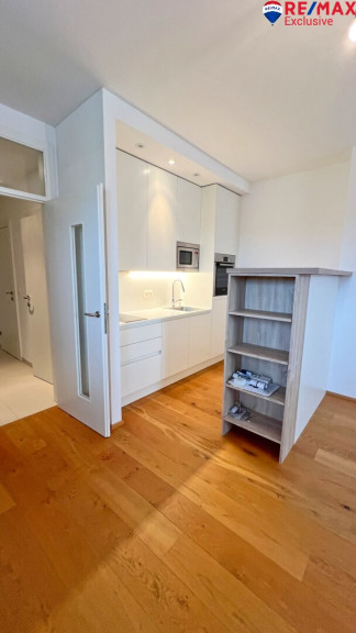 Die Wohnung besticht durch einen cleveren Grundriss mit einem großzügigen Zimmer, das dank der offenen Wohnküche viel Platz zum Leben und Entspannen bietet. Die hochwertige Einbauküche ist modern ausgestattet und lädt zum Kochen und Verweilen ein.