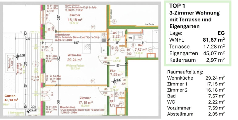 Moderne 3-Zimmer Eigentumswohnung mit Terrasse und großem Eigengarten in Neubauprojekt in beliebter Wohngegend in Eßling bei Großenzersdorf und Nationalpark Donauauen !