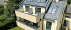 Moderne Architektur mit offenen Balkonen und Terrassen verleihen dem neuen Wohngebäude einen zeitgemäßen ästhetischen Charakter.