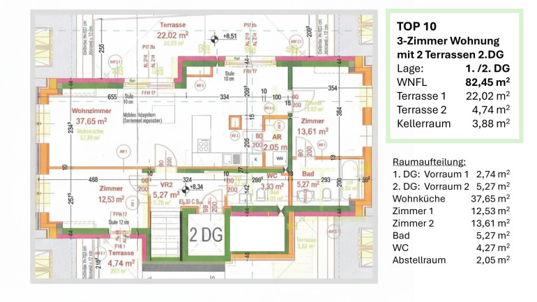 - Penthouse-Wohnung im 2.DG plus 2 Terrassen