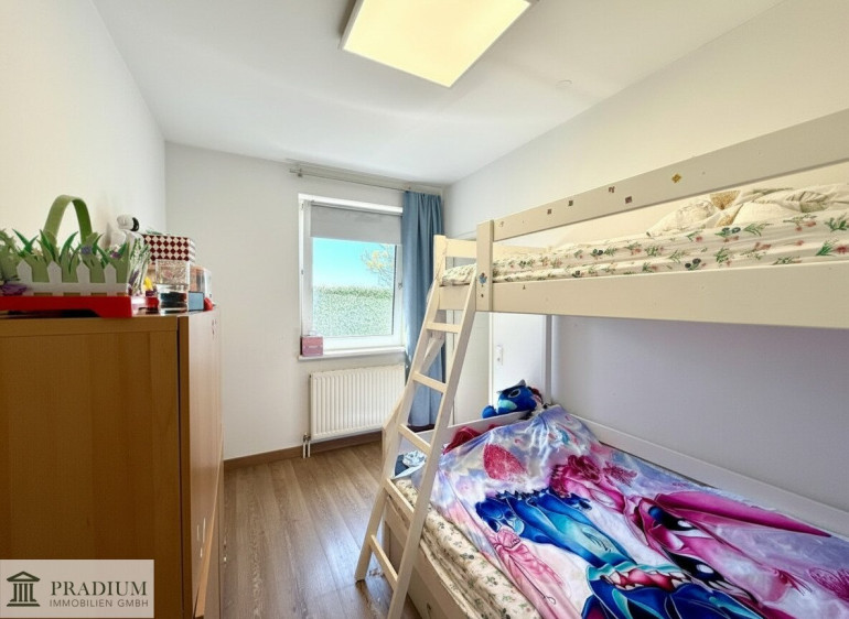 Das Schlafzimmer präsentiert sich ruhig gelegen und angenehm geschnitten. Es bietet ausreichend Platz für Bett, Schrank und weitere Möbel und schafft einen behaglichen Rückzugsort innerhalb der Wohnung. Auch hier zeigt sich, wie gut die vorhandene Fläche genutzt wurde, um ein stimmiges und alltagstaugliches Wohnkonzept zu schaffen.