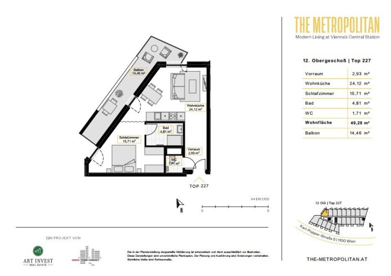 Die neue Skyline am Wiener Hauptbahnhof wächst: Der eindrucksvolle Skyscraper The Metropolitan erweitert den Horizont des modernen Quartiers Belvedere und des Sonnwendviertels und eröffnet eine neue Dimension urbanen Wohnens. In bester Wiener Citylage bietet der von Delugan Meissl Associated Architects geplante 60 Meter hohe Tower smarte Wohnraumlösungen für Glückssucher, Freigeister und Überflieger. Mit Ausstattungsdetails, die das Wohnen so angenehm wie möglich gestalten. Sie haben die Wahl zwischen Studio, Apartment oder Suite.
