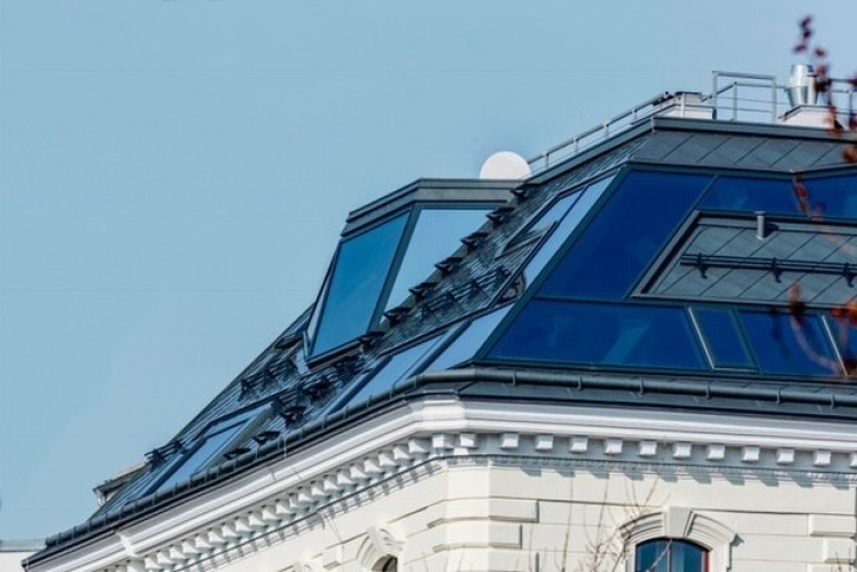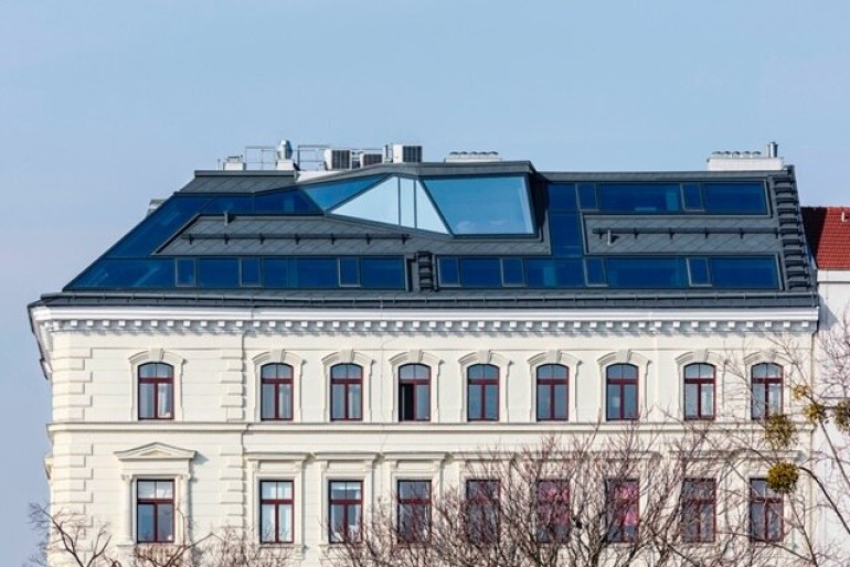 Dieser galerieartige Wohntraum (mit ca. 255 m2 Wohn-Nutzfläche; Ebene 1 mit ca. 175 qm & Ebene 2 mit ca. 89,12 qm und zzgl. ca. 33 qm Terrasse) mit herrlichem Galerie-Style, befindet sich in einem stilvoll sanierten Gründerzeithaus im Dachgeschoß, der sehr aufwändig und hochwertig ausgebaut wurde (selbstverständlich mit Panorama-Lift erreichbar).