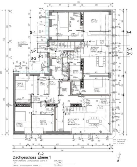 - weiters ein großartiger Wohn-Traum (ca. 72qm) mit exquisitem Wohn-Ess-Bereich und offene Poggen Pohl Designer-Küche und spektakulärer Galerie-Aufgang in die Ebene2;