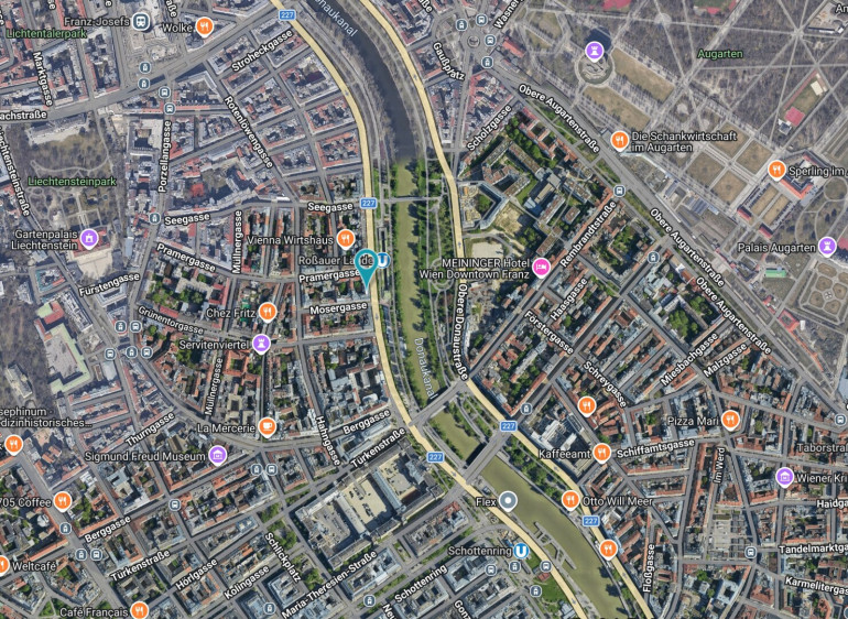 Dieser Standort bietet nicht nur zahlreiche Einkaufsmöglichkeiten (SERVITENVIERTEL) sondern auch eine Versorgung mit den wichtigsten Dienstleistungen, Apotheken, Ärzten, Rechtsanwälten, etc... öffentliche Verkehrsmitteln, wie U-Bahn U-4 Station "Roßauer Lände", Bus, Straßenbahn, City-Liner sind ebenfalls in wenigen Minuten zu Fuß erreichbar.