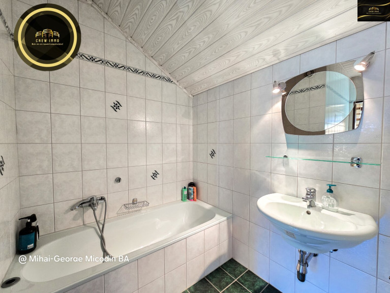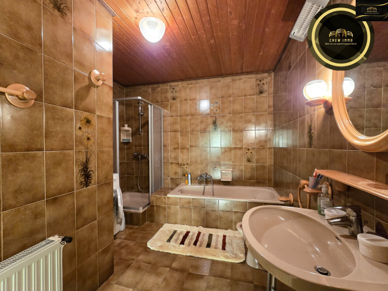 Fliesen, Teppichboden, Zentralheizung, Einbauküche, Badewanne, Dusche, Carport