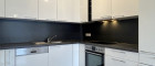 Eingetreten durch den Flur, gelangen Sie in die stilvolle, voll ausgestattete Küche, die durch ihre klare, moderne Gestaltung besticht und sich zum hellen Wohnzimmer hin öffnet. Das großzügige Wohnzimmer bietet ausreichend Platz für einen gemütlichen Wohnbereich.