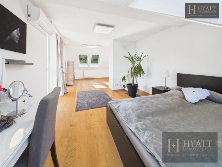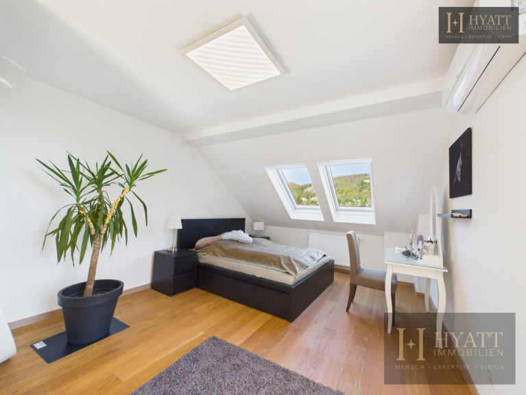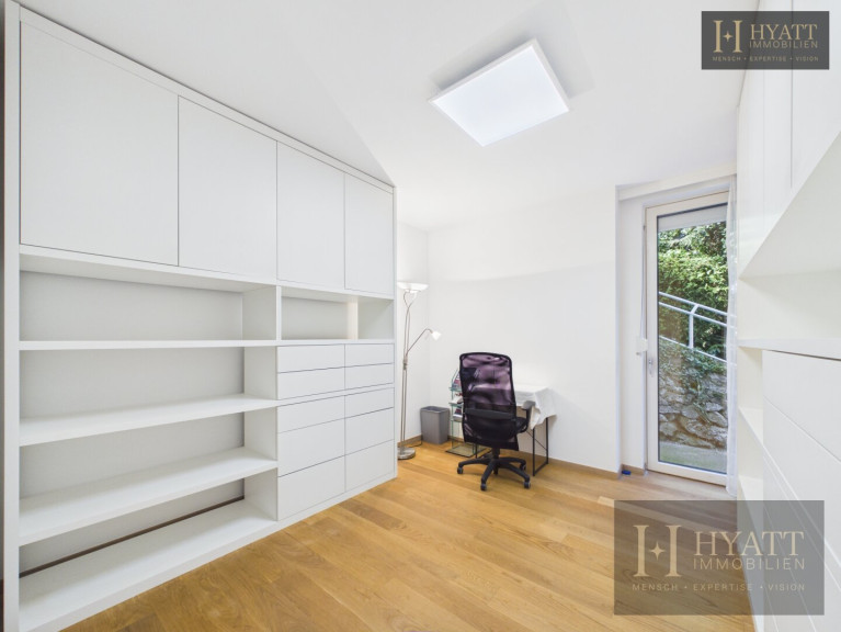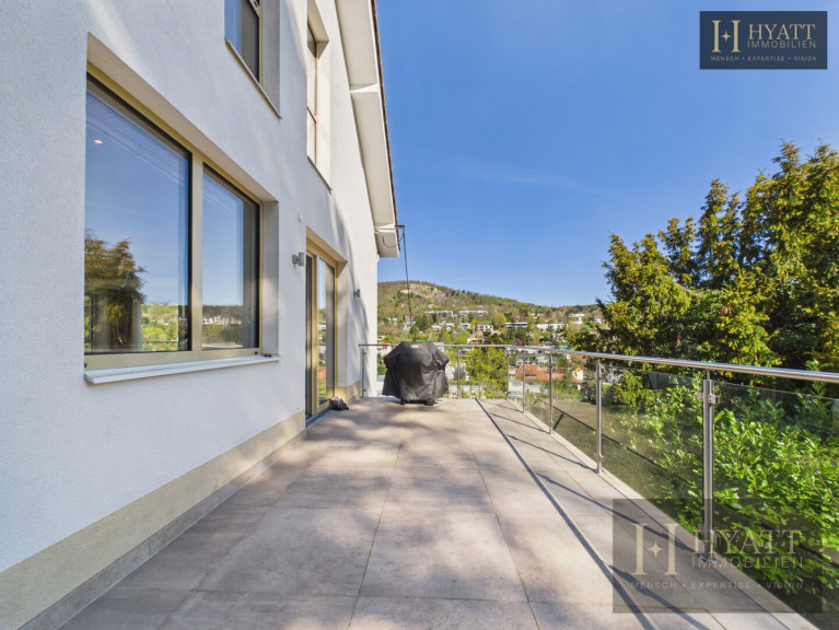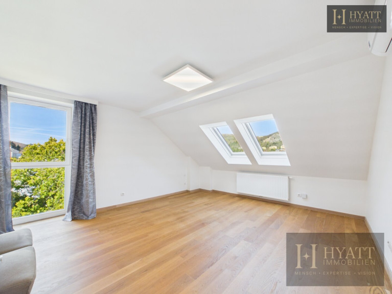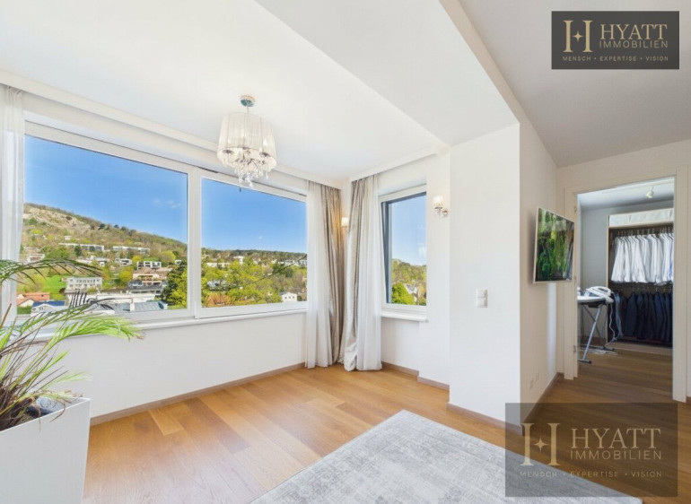 In Hinterbrühl, eingebettet in eine idyllische Landschaft, öffnet sich hier ein Rückzugsort, der jeden Tag aufs Neue verzaubert. Der Blick schweift über den stillen Wald, während in der Ferne die Stadt sanft pulsiert, eine perfekte Harmonie aus Ruhe und Leben. Es ist dieser besondere Ausblick, der morgens inspiriert und abends zur Ruhe kommen lässt.