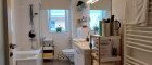Vorraum, Gäste-WC, Badezimmer mit Fenster, Badewanne und zusätzlicher Toilette, Wohnküche samt hochwertiger Einbauküche mit Elektrogeräten.