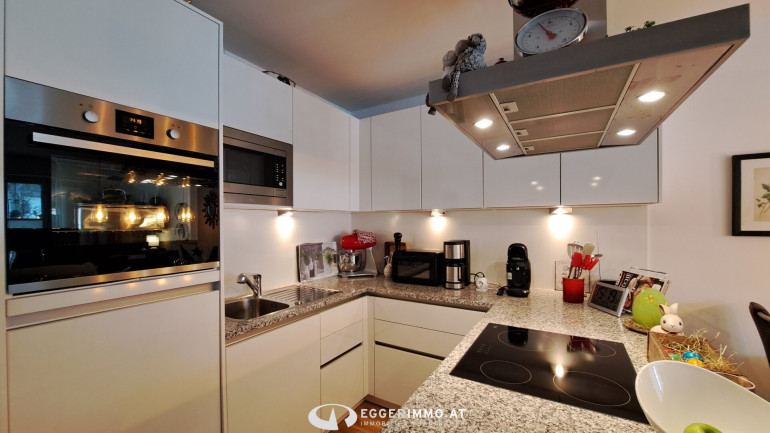 Die Wohnung überzeugt durch eine hochwertige, vollausgestattete Einbauküche inklusive moderner Elektrogeräte, die keine Wünsche offenlässt und zum Kochen und Verweilen einlädt. Die angenehme Fußbodenheizung sorgt in allen Räumen für ein behagliches Wohnklima.