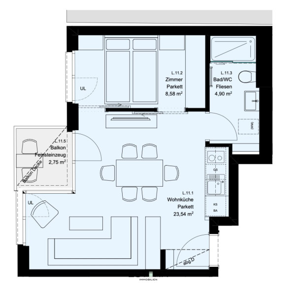 - Wohnküche mit Zugang zum Balkon