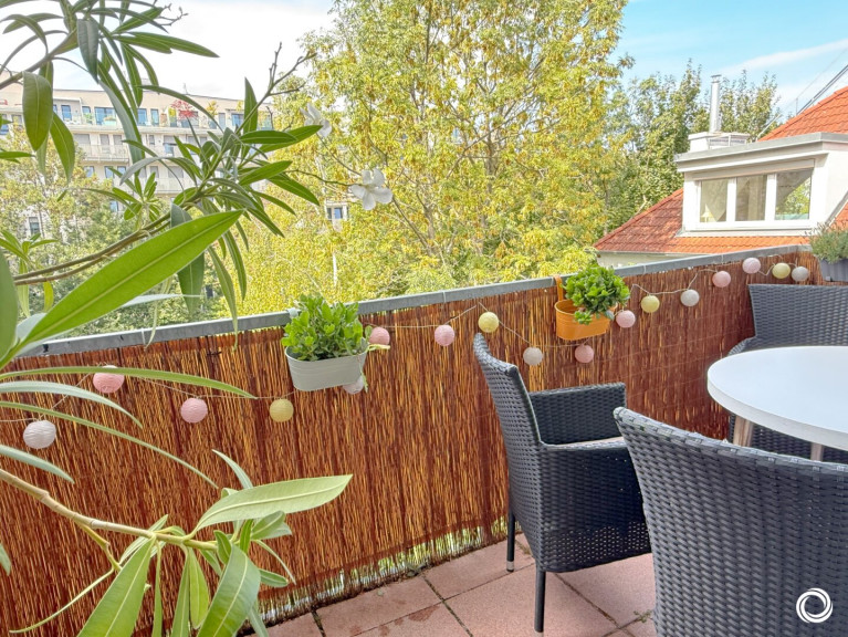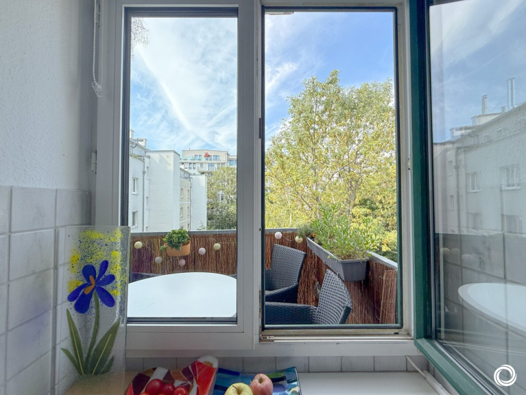 Ein besonderes Highlight ist der ruhige Balkon mit Grünblick in nordwestlicher Ausrichtung – ideal für ein gemütliches Frühstück im Freien oder ein Glas Wein in der Abendstimmung. Die Wohnung bietet zwei großzügige Zimmer, einen separaten Home-Office-Bereich, eine voll ausgestattete Küche, Bad mit Wanne und Dusche sowie ein separates WC mit Fenster.
