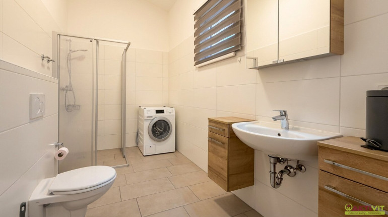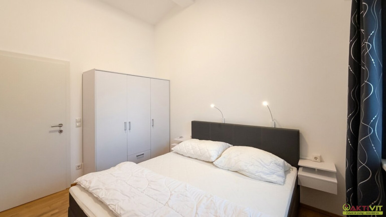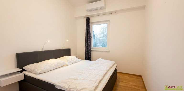 Das in Massivbauweise errichtete Wohnhaus stammt aus dem Jahr 2019, die Wohnung präsentiert sich in sehr gut gepflegtem Zustand. Die Ausstattung entspricht einem zeitgemäßen Wohnstandard und umfasst Fliesen- und Parkettböden, Fußbodenheizung, Klimaanlage sowie Rollläden bzw. elektrische Rollos. Beheizt wird mittels Fernwärme, zusätzlich ist Solarenergie bzw. eine PV-Anlage vorhanden. Das Badezimmer verfügt über Fenster und Dusche, eine Einbauküche ist vorhanden. Darüber hinaus wird die Wohnung voll möbliert angeboten, was den sofort nutzbaren Charakter dieser Immobilie zusätzlich unterstreicht. Keller und Parkplatz runden das Gesamtpaket stimmig ab.