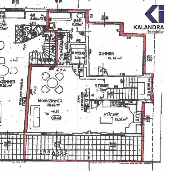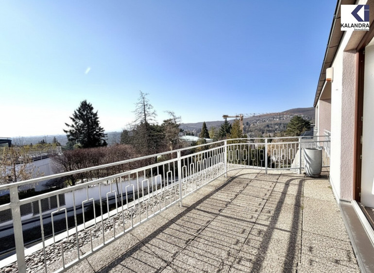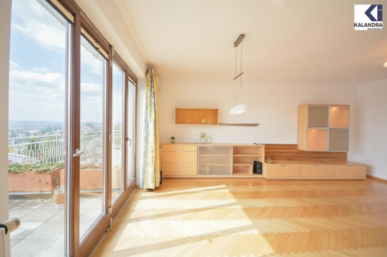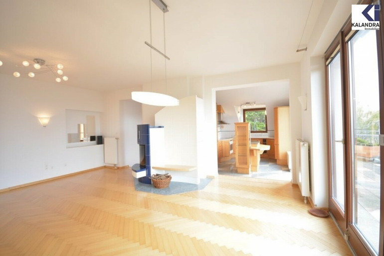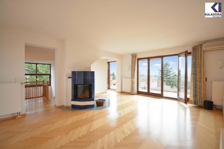 Diele, Wohn-& Eßzimmer mit offenem Kamin und anschließender, offenen Küche (ca. 44m²), direkter Ausgang auf eine südseitige Terrasse (ca. 27m²) mit Fernblick über Wien, ein Schlaf- oder Arbeitszimmer (ca.19m²), Wannenbad mit WC, Abstellraum.