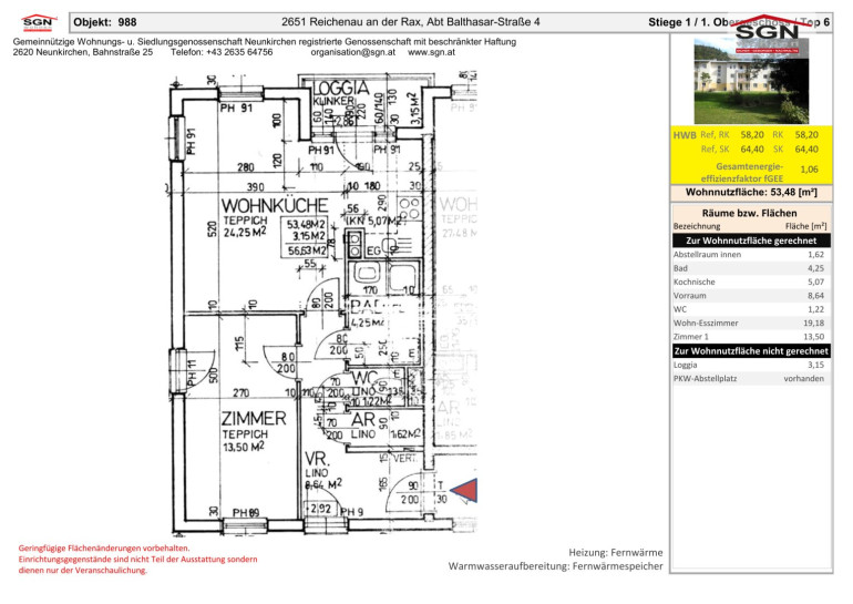 | Heizwärmebedarf: | 64,40 kWh/m²a |